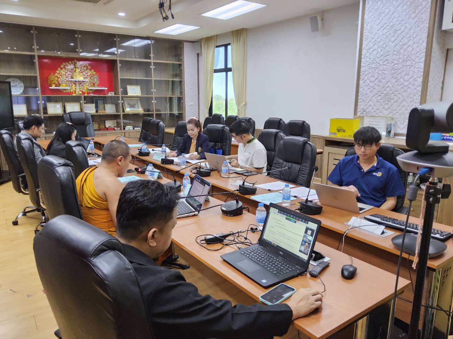 และห้องประชุมออนไลน์ผ่านระบบ ZOOM โดยมี พระราชวัชรธรรมวาที, รศ.ดร. ประธานกรรมการดูแลระบบสมาชิกกองทุนฯ เป็นประธานการประชุม